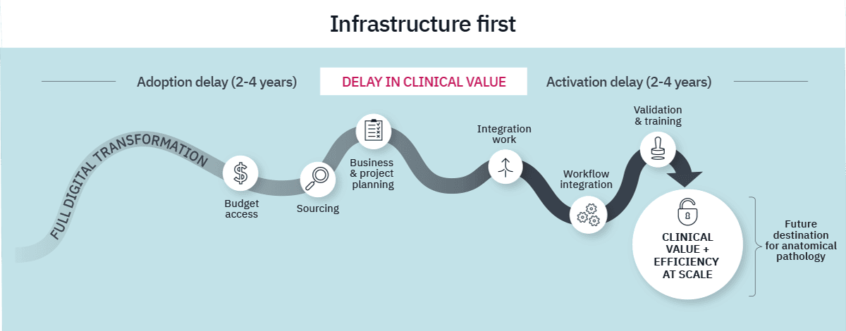 Over the past decade, the dominant vision for the digital pathology field has centered on large-scale enterprise transformation. This Infrastructure-First model aims to digitize the entire laboratory environment through high-throughput scanners, enterprise image- and workflow management systems (IMS/PACS), and full integration with laboratory and medical records (LIMS/HIS).