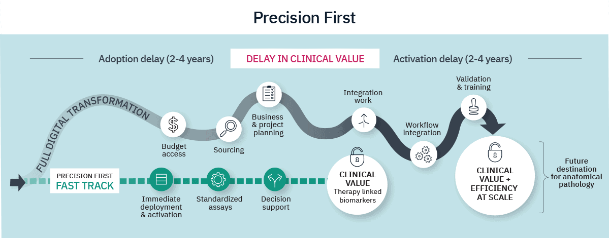However, full digital transformation often spans multiple years. For therapy-linked biomarkers that determine immediate treatment eligibility, critical decisions cannot wait for that timeline. Precision-First is not an alternative to enterprise transformation; it is a catalyst for it. Early deployment generates measurable clinical and operational evidence, builds internal familiarity with digital workflows, and creates institutional advocates for broader adoption. By activating precision early, institutions can reduce Clinical Value Leakage immediately while building the momentum, evidence base, and organizational confidence needed for the broader digital journey.