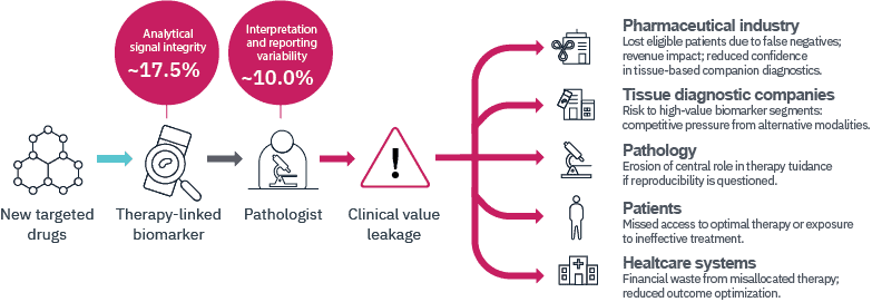 Clinical Value Leakage occurs when biologically eligible patients are not correctly identified for therapy, when treatment decisions are influenced by avoidable variability, or when confidence in tissue-based diagnostics is diminished.